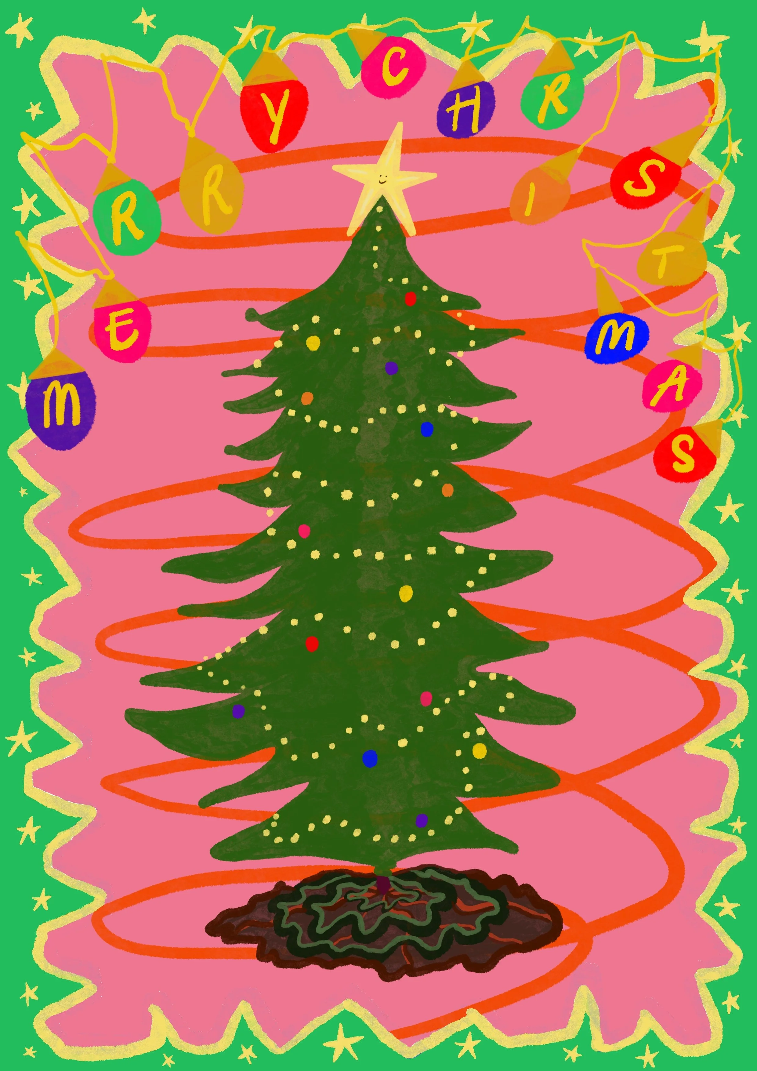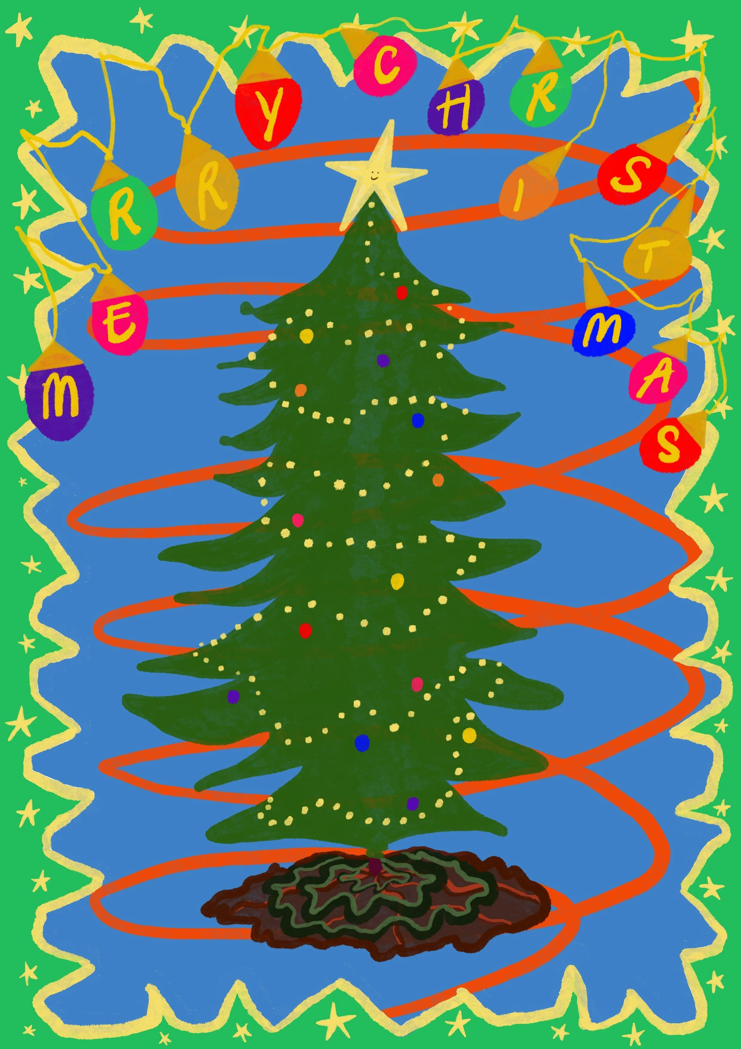 A fun illustration I created over the 2025 Christmas holiday. I had a real craving to draw a Christmas tree with colourful lightbulbs therefore, I started creating this illustration in Procreate. Then I exported all the layers and imported them into After Effects turning it into a short little animation.
